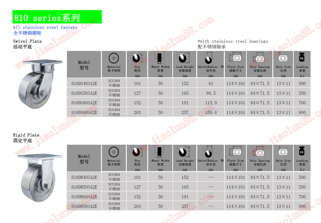◆輪子特點:采用SUS304不銹鋼棒精車加工而成,配不銹鋼軸承,抗腐蝕性能強,100%可水洗。