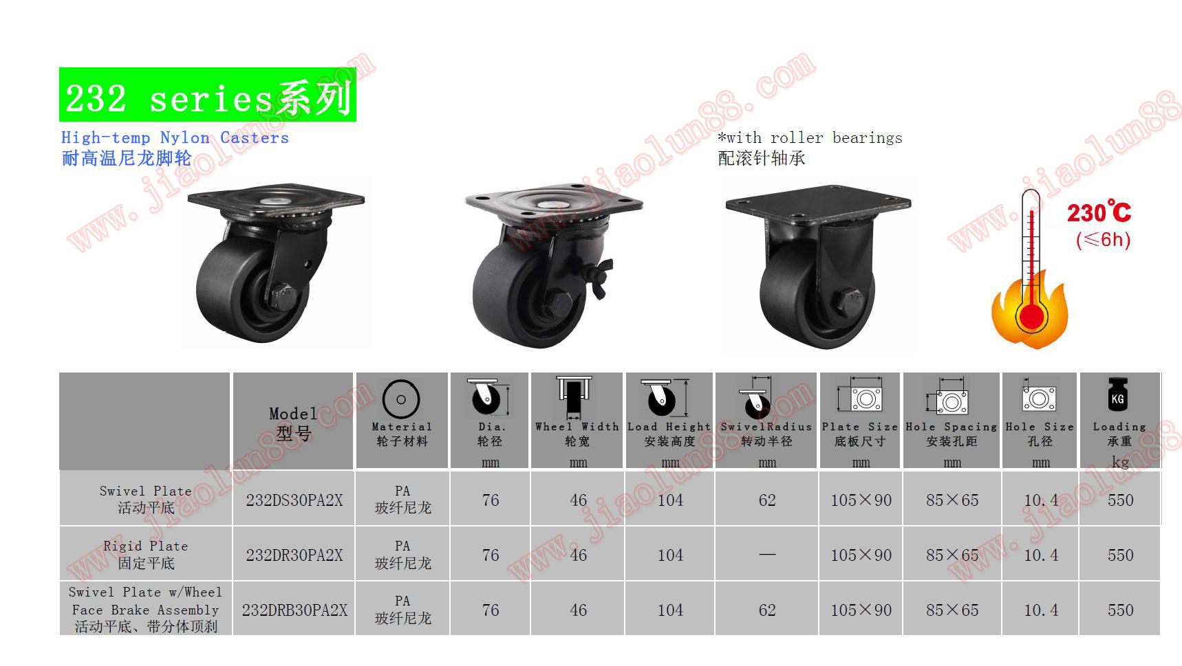 低重心腳輪參數特點:(單輪承載550公斤)