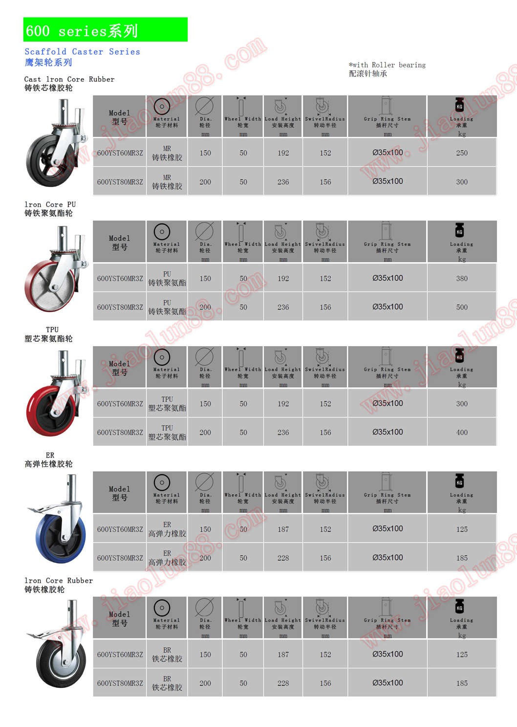 鑄鐵芯橡膠鷹架輪/腳手架腳輪