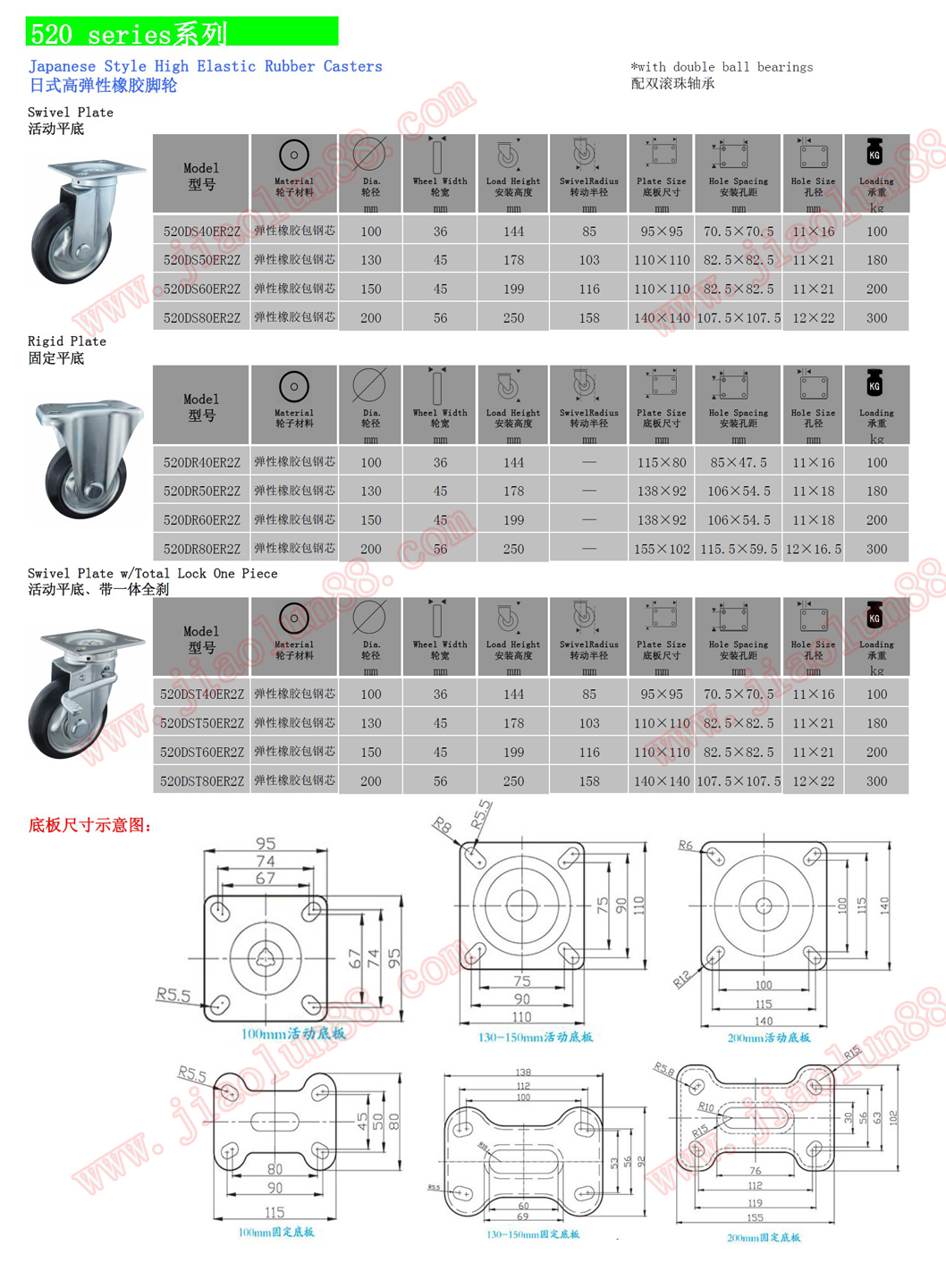 日式腳輪,夾板腳輪,日式橡膠輪