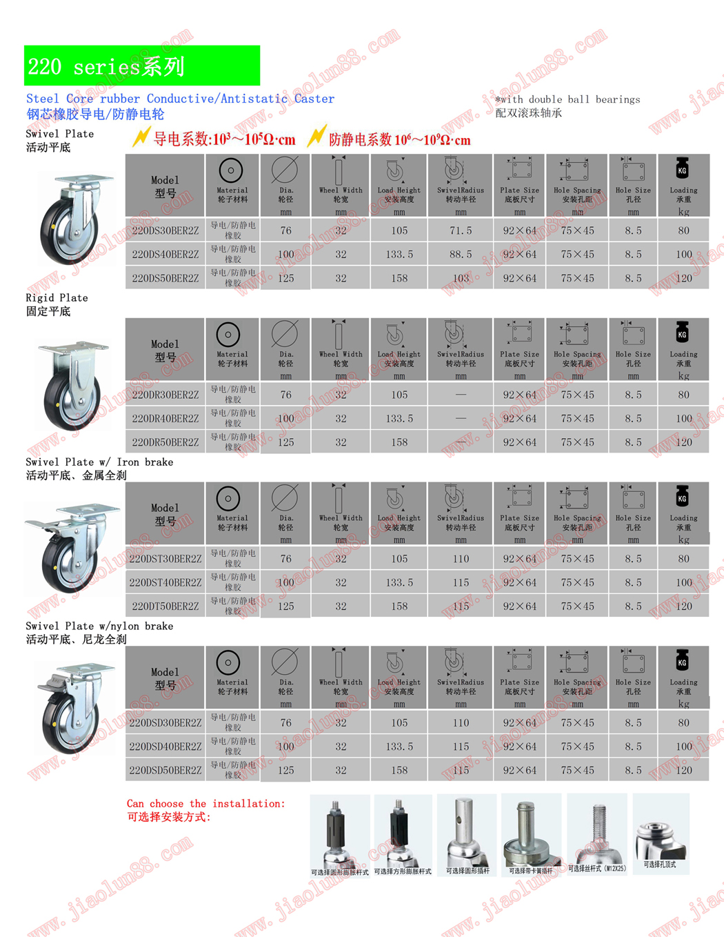 鋼芯環(huán)保橡膠導(dǎo)電輪/防靜電輪平板塑膠碟剎
