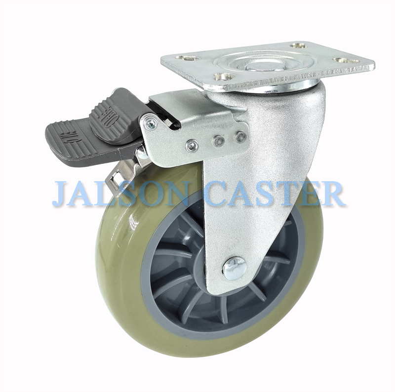 5寸中重型鋼聚氨酯輪剎...