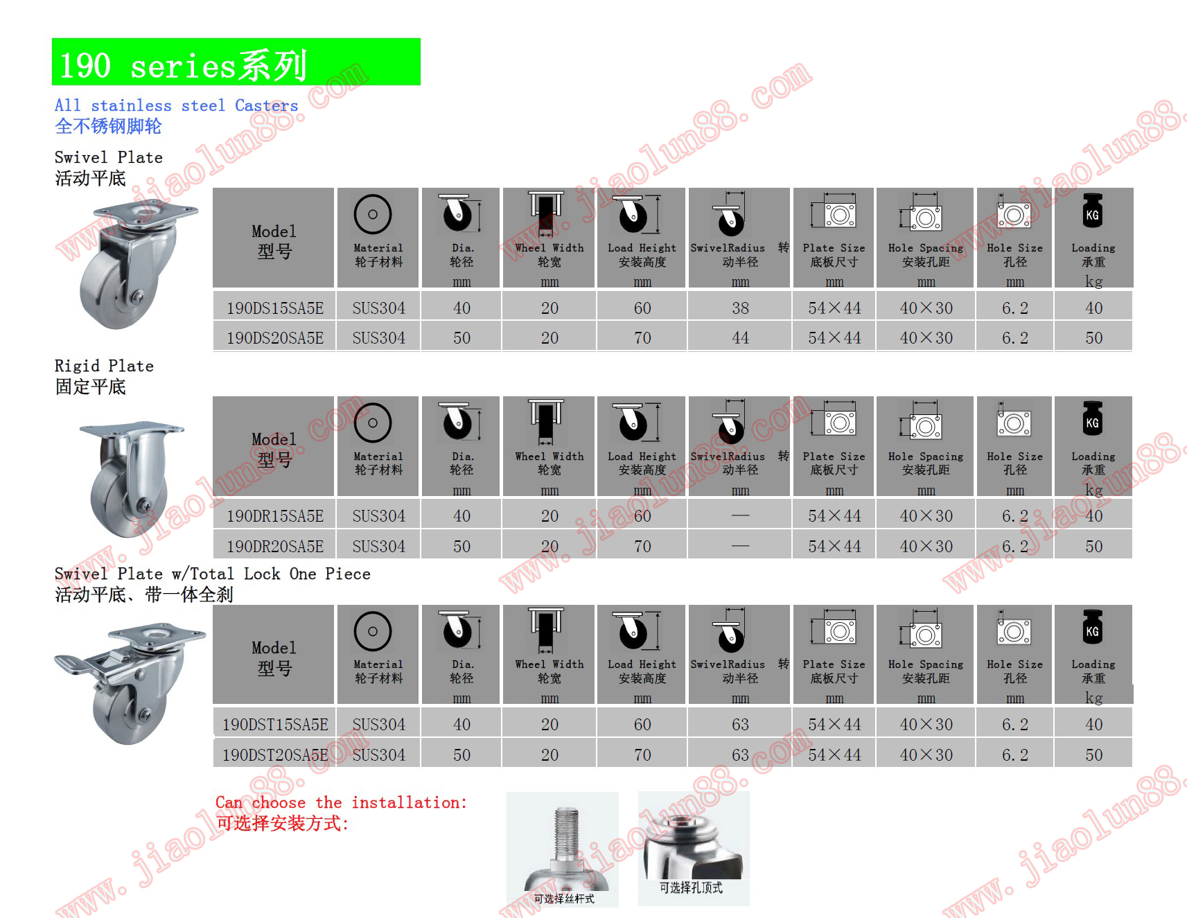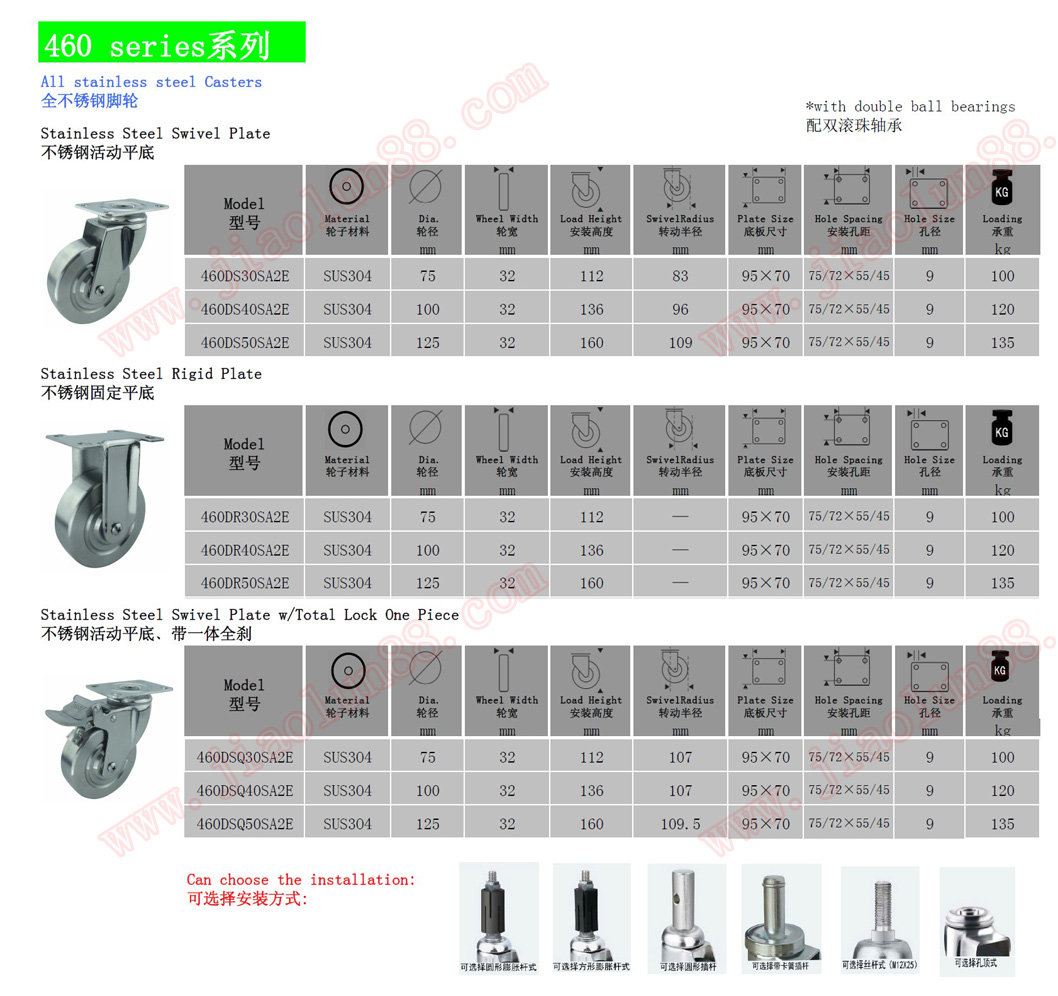中型全不銹鋼腳輪系列
